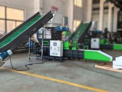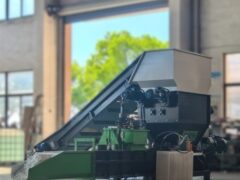 Sistema de compactación mediante tornillo para compactar el poliespán. Equipo ideal para la preparación del material para su reciclaje, transporte y venta.
